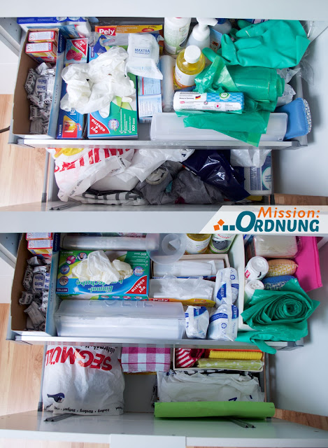 Wenn ich die Schublade jetzt aufmache find ich es schön, dass alles ordentlich und sichtbar ist und stecke die Dinge gerne wieder an ihren Platz wo jetzt jedes Teil einen hat.